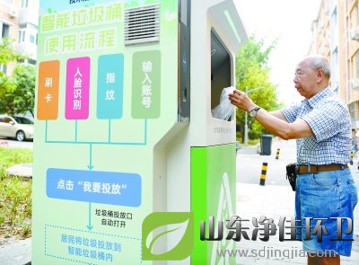 建國門街道外交部街33號院居民正在使用新安裝的智能垃圾桶。小區(qū)內(nèi)新設(shè)的6臺單體智能垃圾桶,可以進行人臉、指紋識別,還可以刷積分卡,方便居民更好地分類投放廚余垃圾,同時還能及時記錄每個用戶參與分類的頻次和數(shù)量。本報記者 和冠欣攝